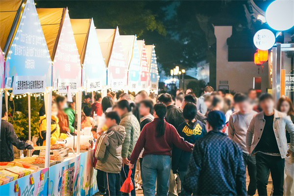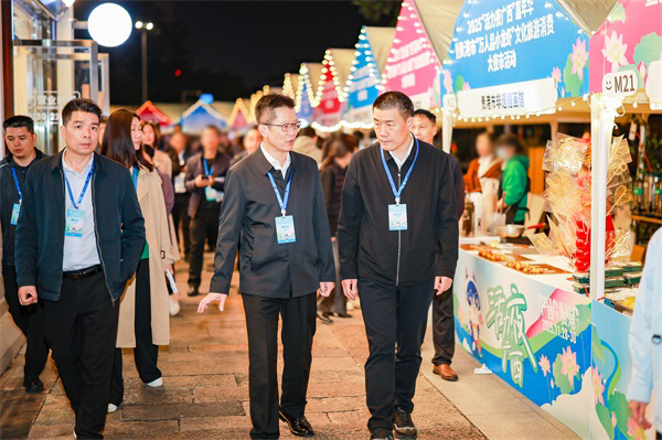 行至吾园商业街,领导们驻足多个摊位,与创作者、商户亲切交流,详细了解荷花主题文创产品的设计理念、市场反响及文化内涵,鼓励进一步挖掘本地特色资源,推动文创产品提质升级。走访过程中,领导还与现场身着古装的游客互动,听取了他们对夜游体验的直观感受和建议。