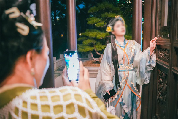 吾园作为本次活动的重要文化体验分会场,围绕“荷”主题精心打造了荷香雅集与文创市集,游客可在景区商业街品荷茶、购荷韵好物。景区内更首次限时开放夜游路线,让市民在光影中领略苏式园林的别样韵味。