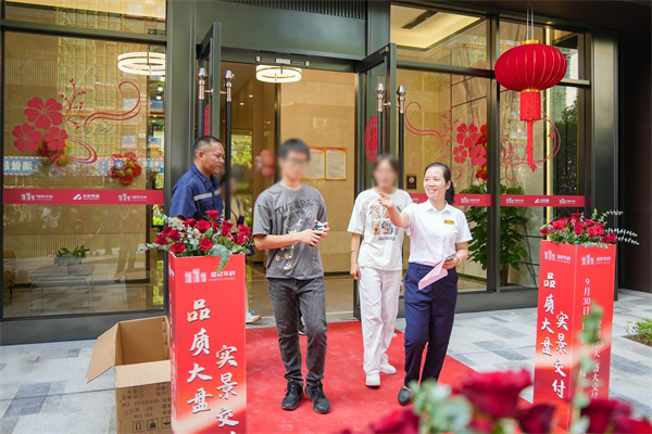 交付现场,气氛热烈而温馨。红毯铺地,繁花点缀,每一处细节都透露出小龙集团对业主的尊重与欢迎。业主们踏着红毯,穿过花丛,仿佛是在走向一个全新的幸福生活。这样的仪式感,让每一位业主都感受到了回家的温暖与喜悦。