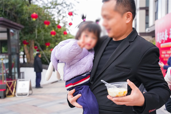 “财神巡游”时,由工作人员装扮的财神爷沿路派发糖果福礼,孩子们兴奋簇拥,大人纷纷拍照记录,欢笑满园。物业还设置了美食分享区,提供八宝粥、豆腐花等传统小吃,业主们围坐品尝、闲话家常,邻里关系在热气与谈笑中悄然升温。