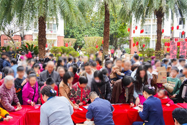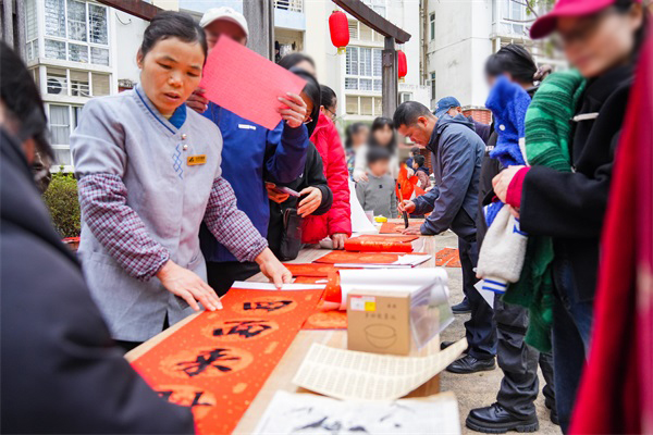 与此同时,多个小区特邀书法老师现场挥毫,免费为业主书写春联。红纸铺展,墨香四溢,一副副满载祝福的春联传递到业主手中。不少业主感慨,手写春联比印刷品更有温度,也让传统年俗在社区里生动延续。